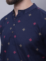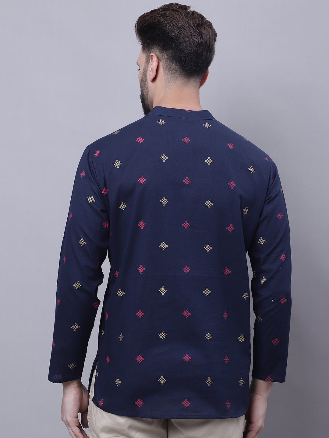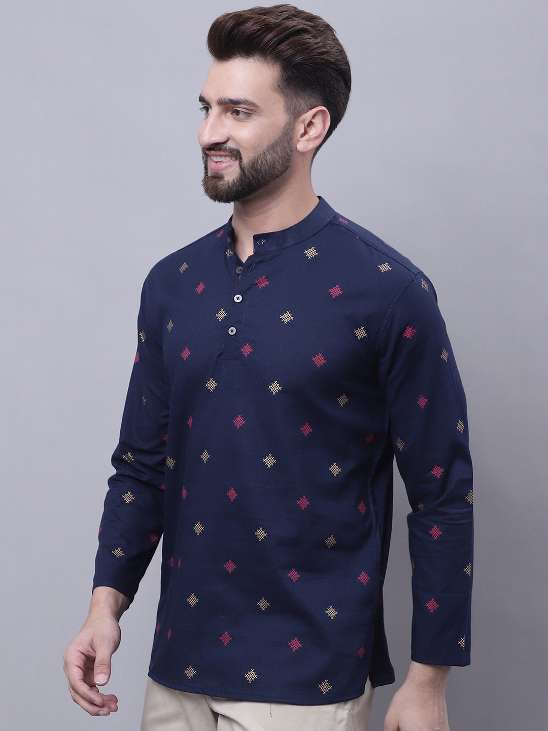 Even Apparels Blue Pure Cotton Short Kurta With Band Collar