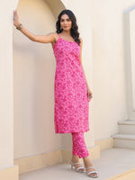 Janasya Bright Cotton Floral Straight Kurta Set Top Fabric: Cotton Top Style: Straight Top Color: Bright Top Pattern: Floral Top Neck: Round N...