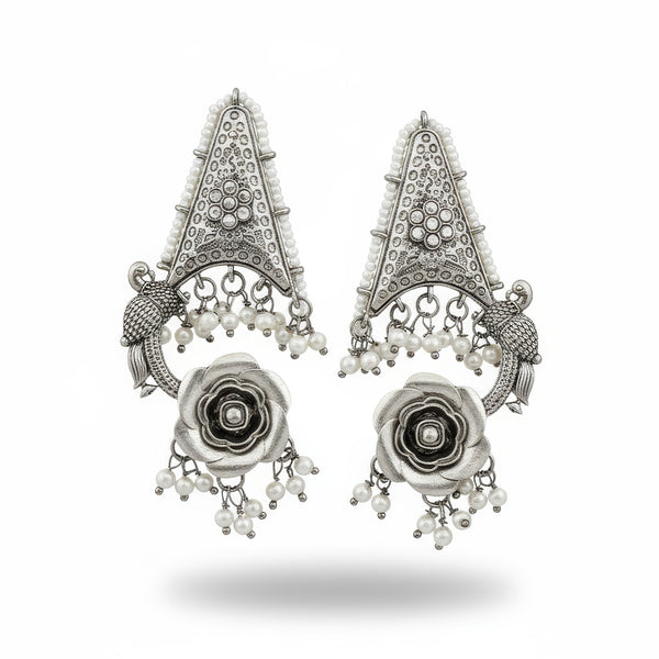 Enhance your ethnic charm with these Fancy Oxidized Silver Earrings for Women, designed in a stylish jhumka and dangler combination. Crafted with fine detailing and a premium oxidized finish, these earrings offer a timeless appeal that perfectly blends tradition with modern elegance.Their lightweight design ensures comfort even during long hours, making them suitable for festive occasions, weddings, and casual gatherings. The versatile style makes them a perfect match with sarees, lehengas, kurtis, or Indo-western outfits.These designer earrings are not only a statement accessory for yourself but also an ideal gift option for your loved ones on special occasions like birthdays, anniversaries, Rakhi, or festive celebrations. Add these trendy oxidized jhumka danglers to your jewellery collection and make every outfit shine with elegance.