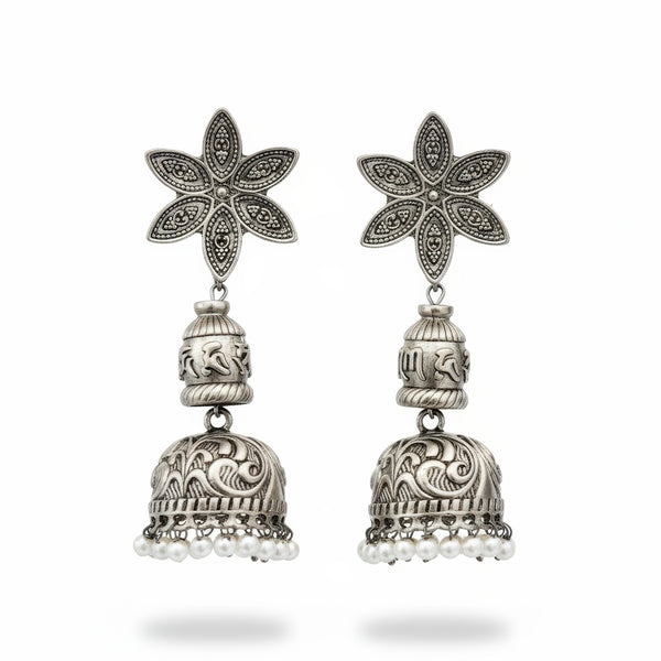 JS Fashion Oxidized Silver Flower Design Jhumka Earrings for Women