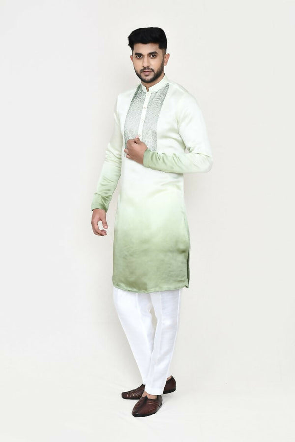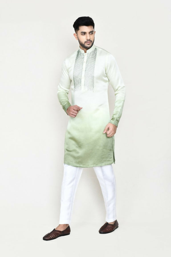 Joban Fashion Green Colored Satin Silk Fabric Kurta With Straight Fit Pant