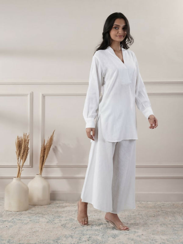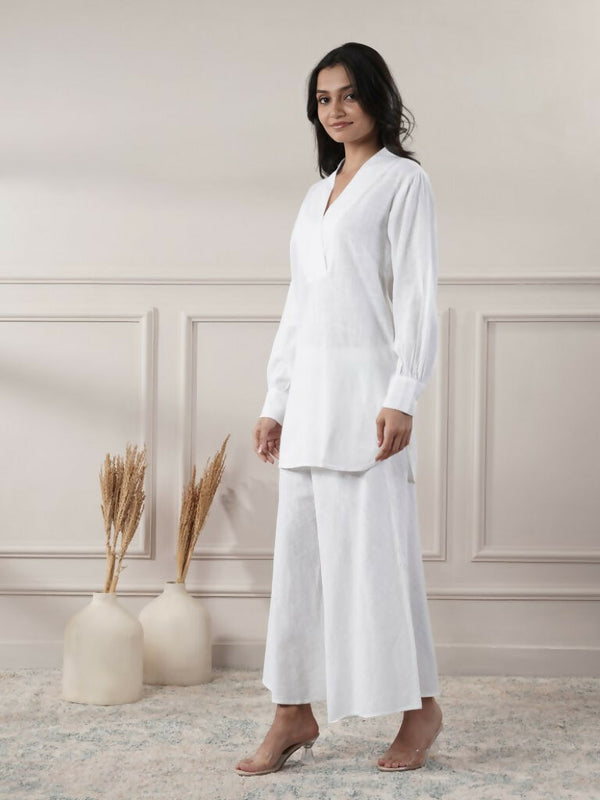Joban Fashion Women's White Cotton Top With Flared Pants - 32