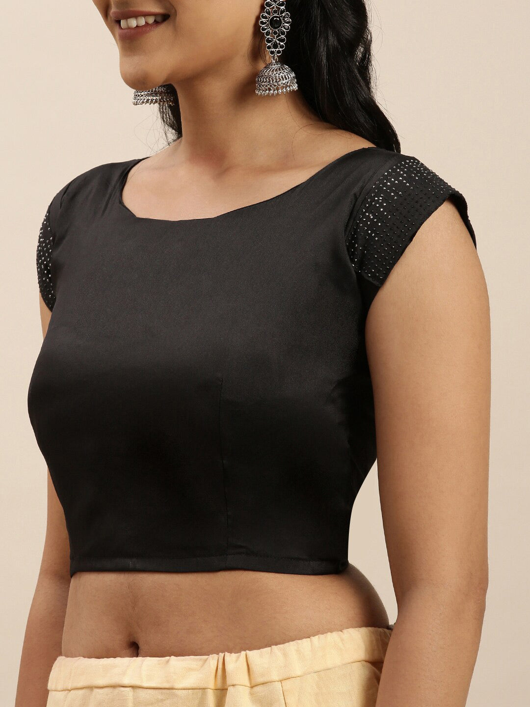 The blouse worn by the model might be for modelling purpose only. Check the image of the blouse piece to understand how the actual blouse piece looks like.