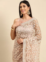 Kalini Embroidered Beads And Stones Embellished Net Saree Product Details Design Details Peach-coloured saree Solid embroidered saree with emb...