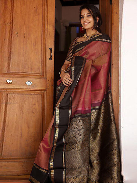 Kalini Floral Woven Design Zari Banarasi Saree Product Details Design Details Maroon & Black saree Ethnic Motifswoven design saree with wo...