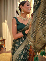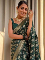 Kalini Floral Woven Design Zari Saree Product Details Design Details Green and gold-toned saree Floral woven design saree with woven design bo...