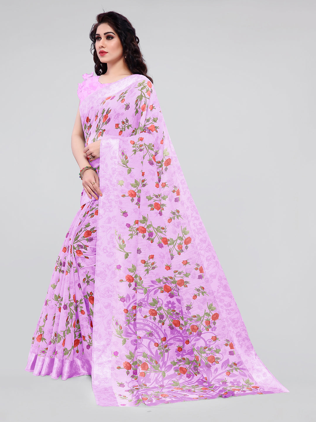 Kalini Pink & Lavender Floral Bagh Saree - Distacart