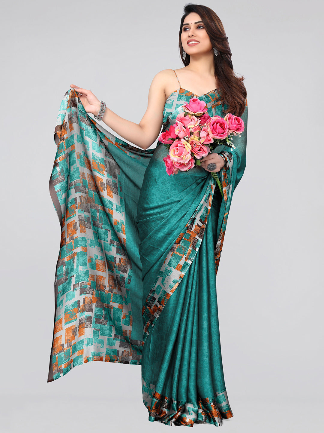 Kalini Teal & Grey Chiffon Saree - Distacart