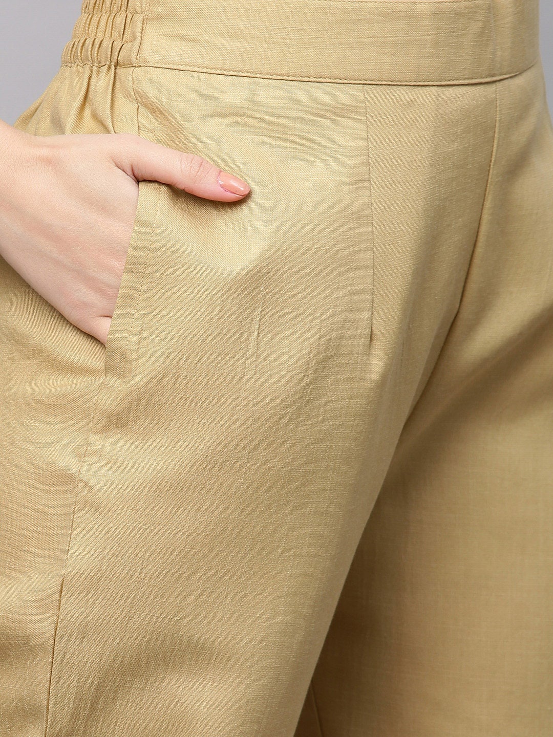 Kalini Women Beige Floral Yoke Design Straight Kurta with Trousers & With Dupatta - S