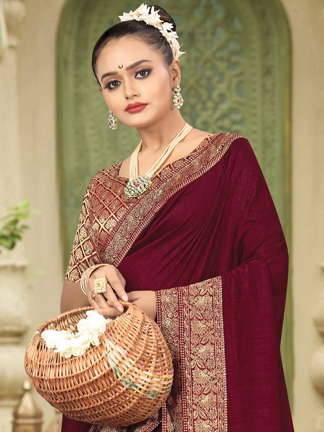 • Maroon and red kanjeevaram saree