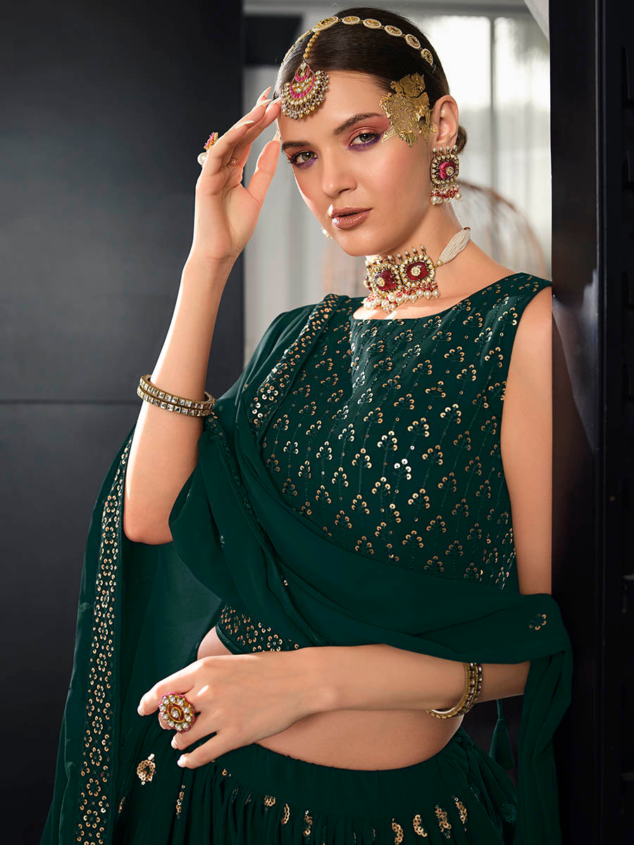 Myra Green Georgette Embroidered Designer Lehenga - Distacart