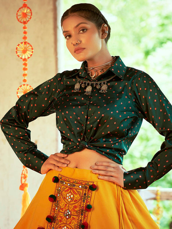 Myra Green & Musturd Yellow Cotton Embroidered Navratri Special Lehenga - Distacart
