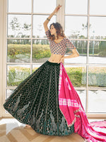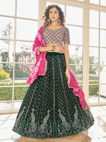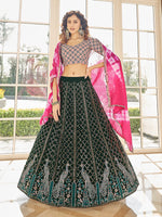 Myra Green & Pink Georgette Embroidered Designer Lehenga