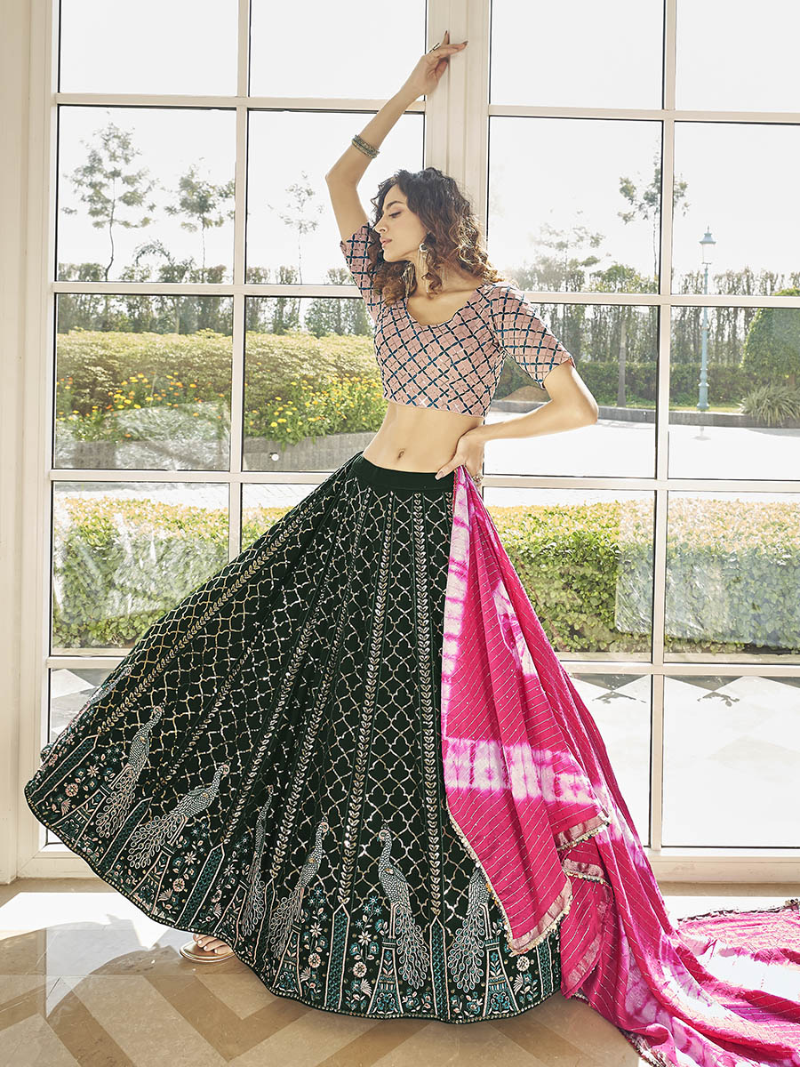 Myra Green & Pink Georgette Embroidered Designer Lehenga - Distacart