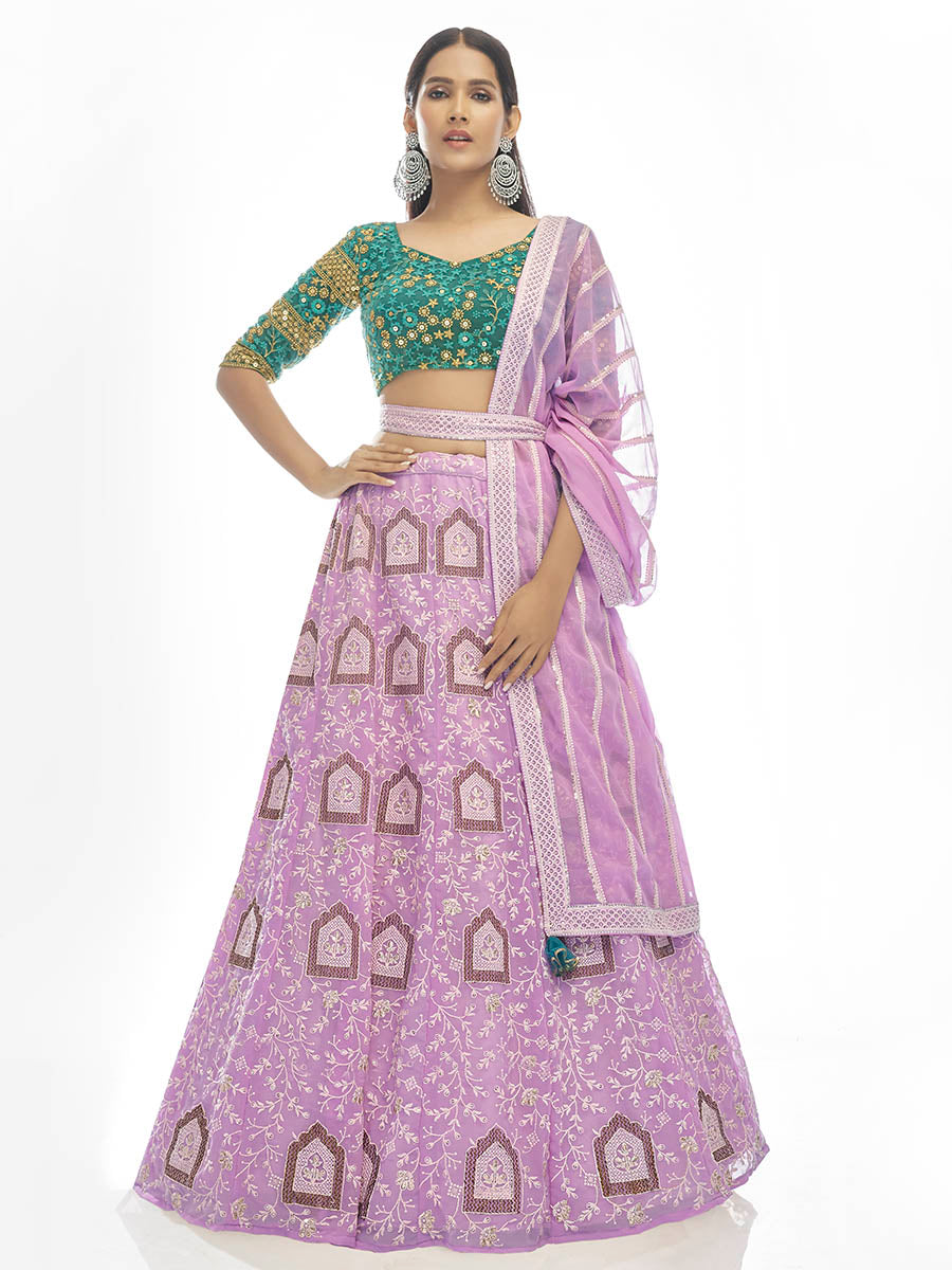 Myra Lilac Georgette Embroidered Designer Lehenga - Distacart