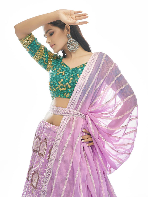 Myra Lilac Georgette Embroidered Designer Lehenga