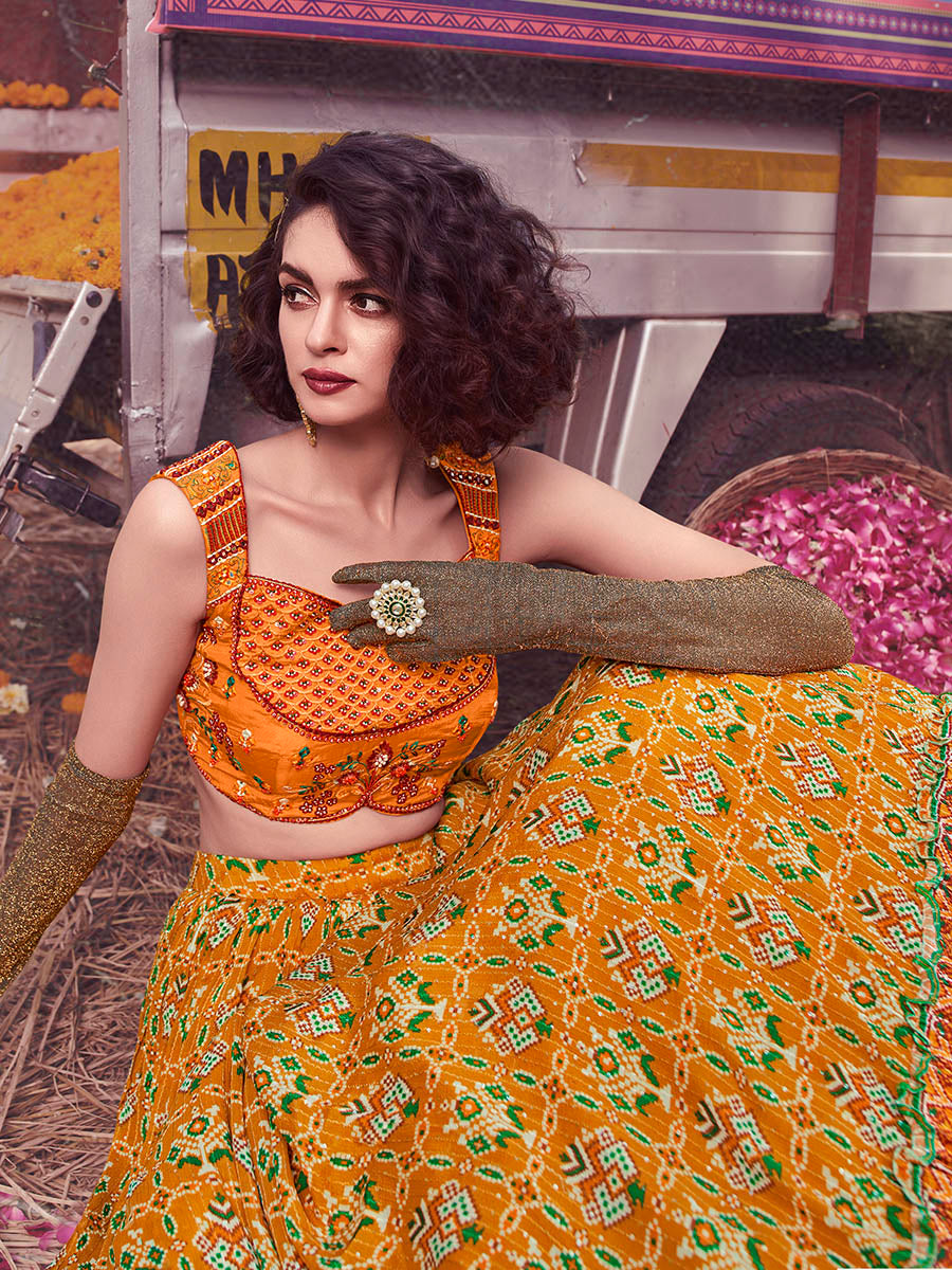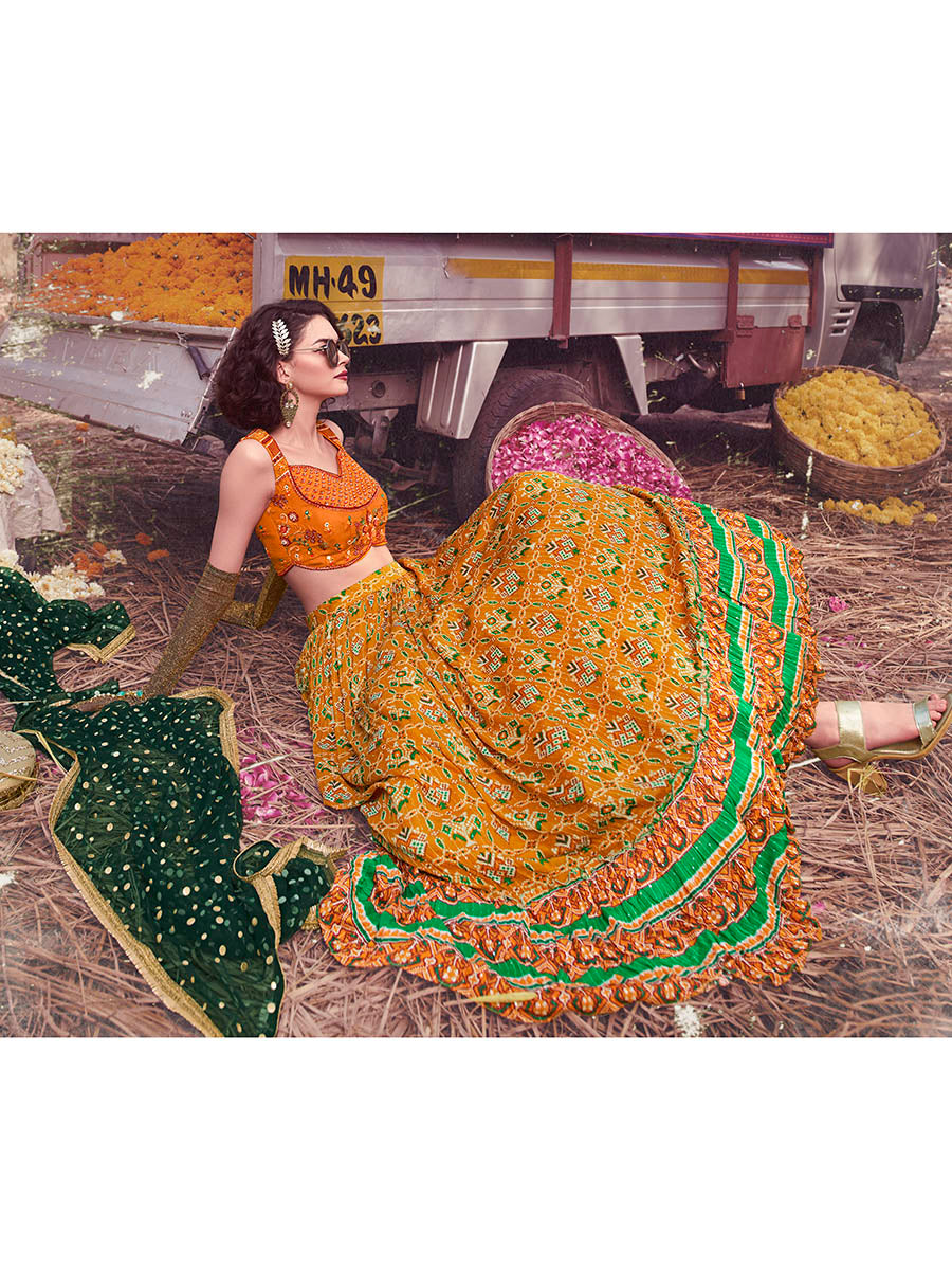 Musturd Art Silk Embroidered Designer Lehenga features a Chinon blouse with micro inner and Art Silk lehenga. Lehenga Work with Thread and Handwork. This Style is made in India and checked by hand to ensure high quality. Only Dry Clean is recommended for Ethinic ethnic wear