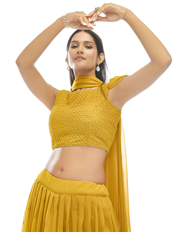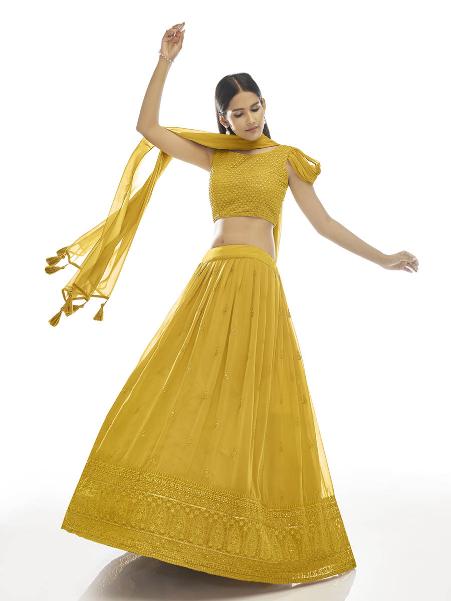 Myra Musturd Georgette Embroidered Designer Lehenga - Distacart