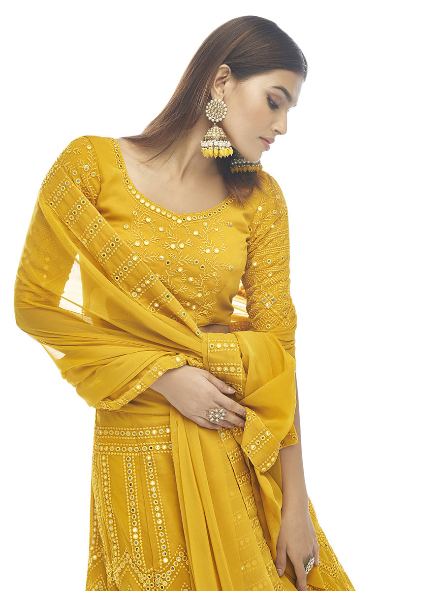 Myra Musturd Georgette Embroidered Designer Lehenga - Distacart