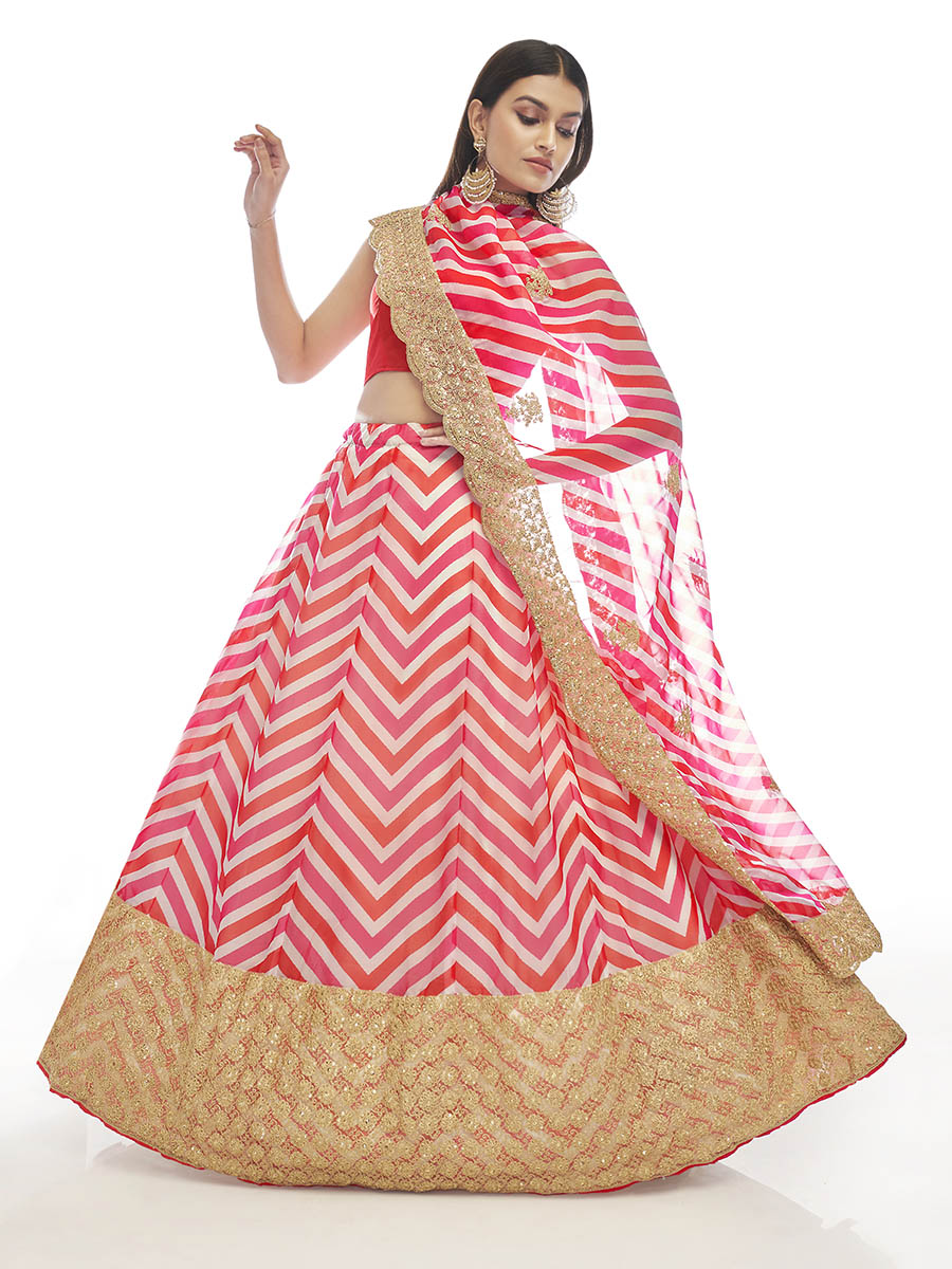 Myra Pink Organza Embroidered Designer Lehenga - Distacart