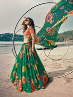 Myra Rama Green Organza Printed & Embroidered Lehenga