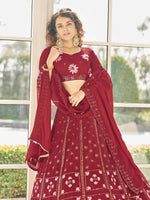 Red Georgette Embroidered Designer Lehenga features a Georgette blouse with micro inner and Georgette lehenga. Embroidery is completed with Thread With Multi Sequince. This Style is made in India and checked by hand to ensure high quality. Only Dry Clean is recommended for Ethinic ethnic wear