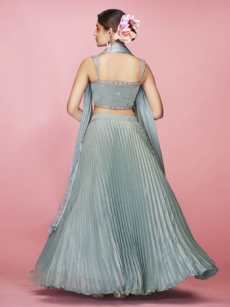 Sky Blue Art Silk Embroidered Designer Lehenga features a Art Silk blouse with micro inner and Art Silk lehenga. Lehenga Work with Crush , Thread and Handwork. This Style is made in India and checked by hand to ensure high quality. Only Dry Clean is recommended for Ethinic ethnic wear