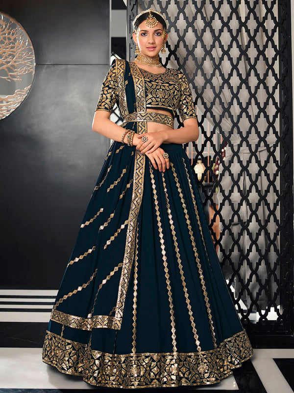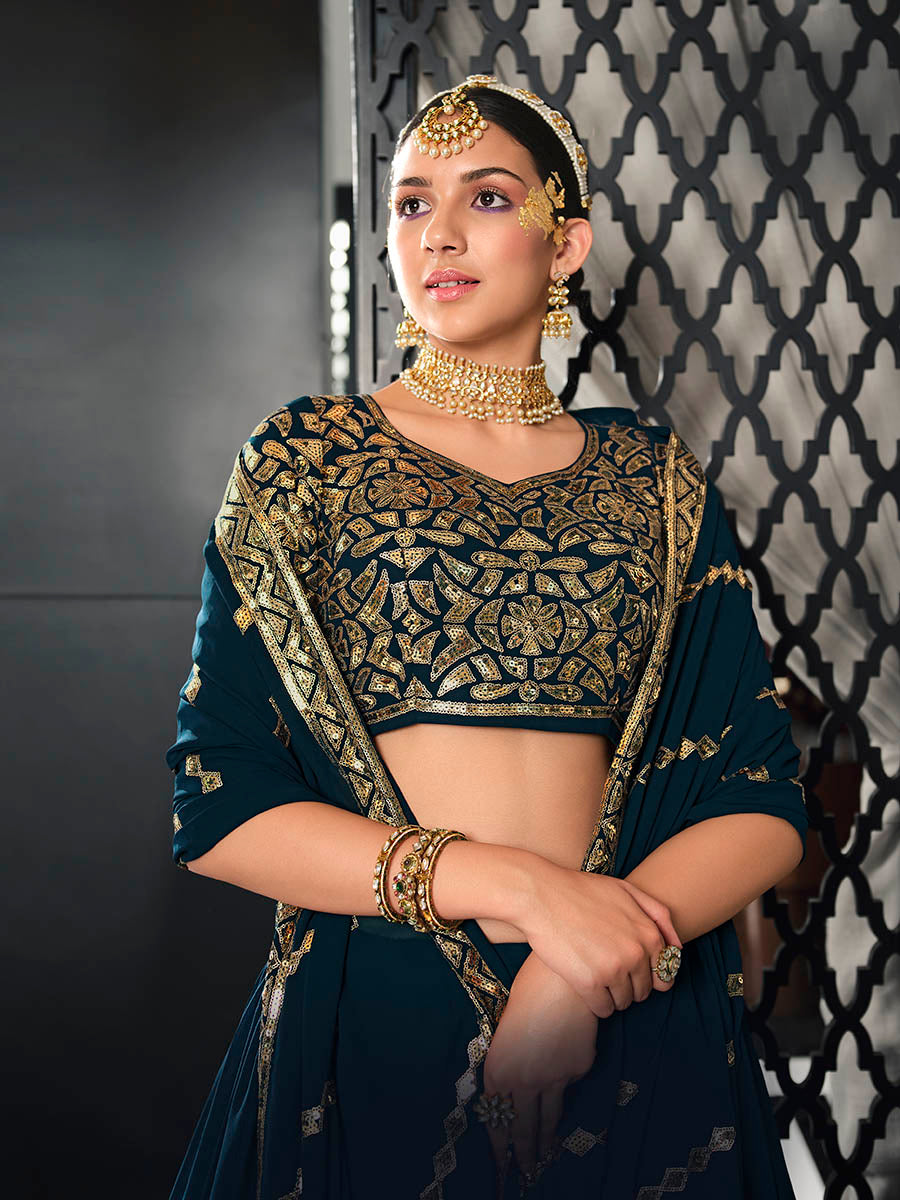 Myra Teal Blue Georgette Embroidered Designer Lehenga - Distacart