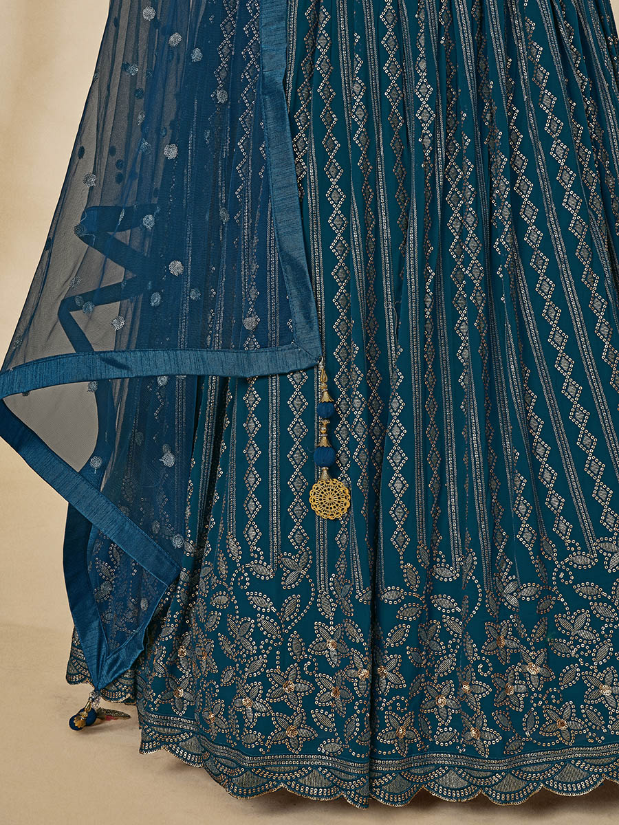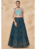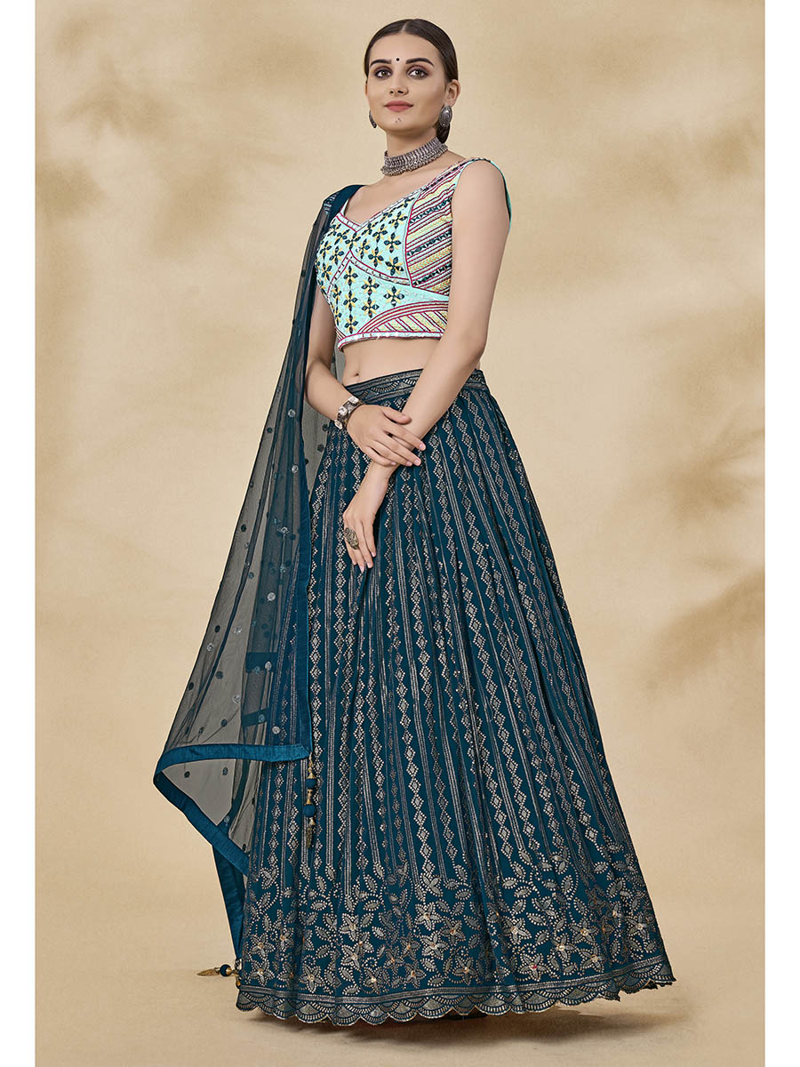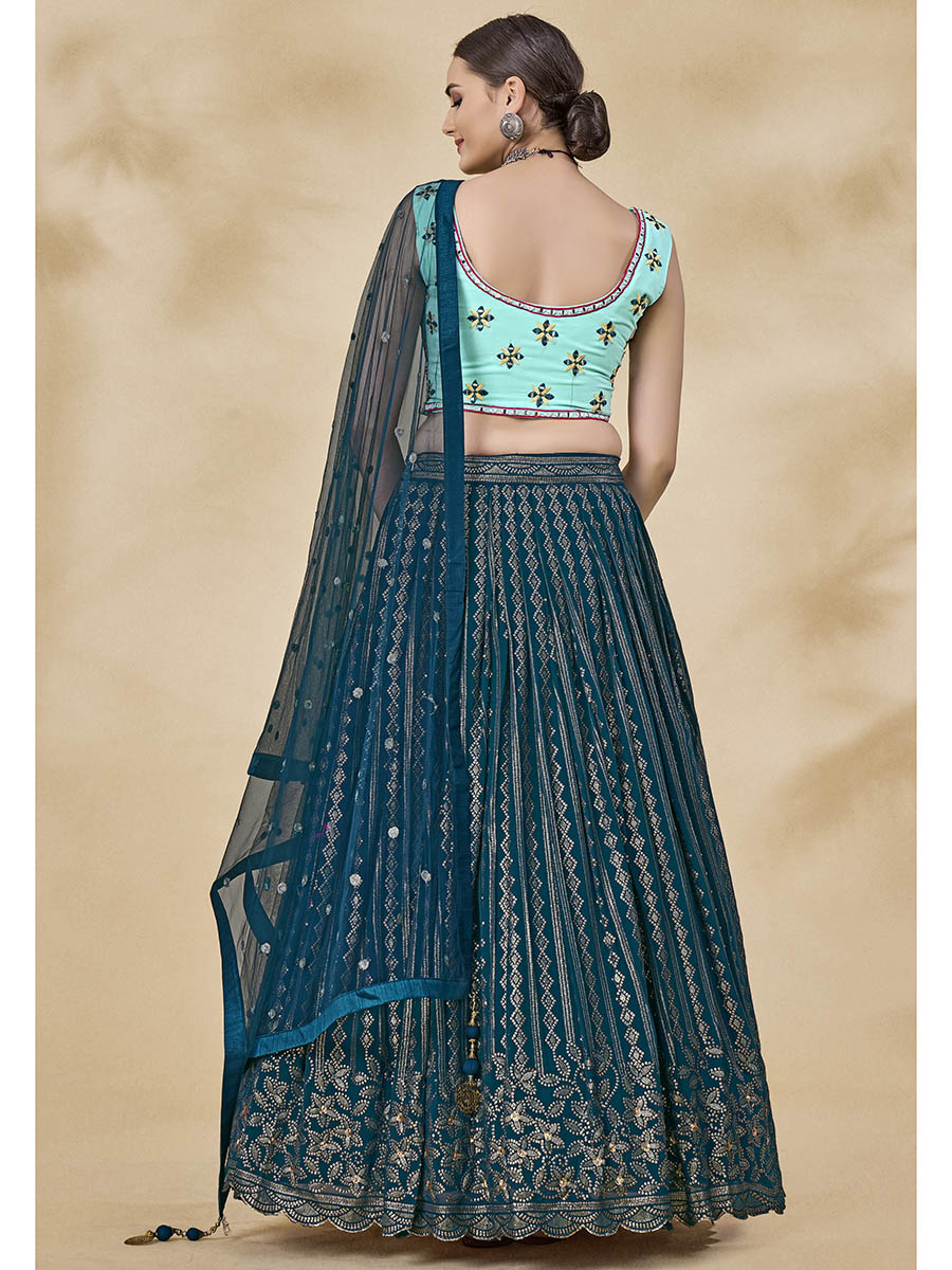 Myra Teal Green Georgette Embroidered Designer Lehenga - Distacart