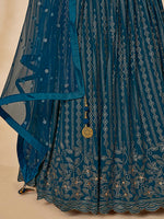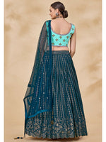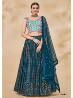 Myra Teal Green Georgette Embroidered Designer Lehenga