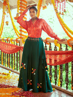 Myra Tomato Red & Green Cotton Embroidered Navratri Special Lehenga - XXS