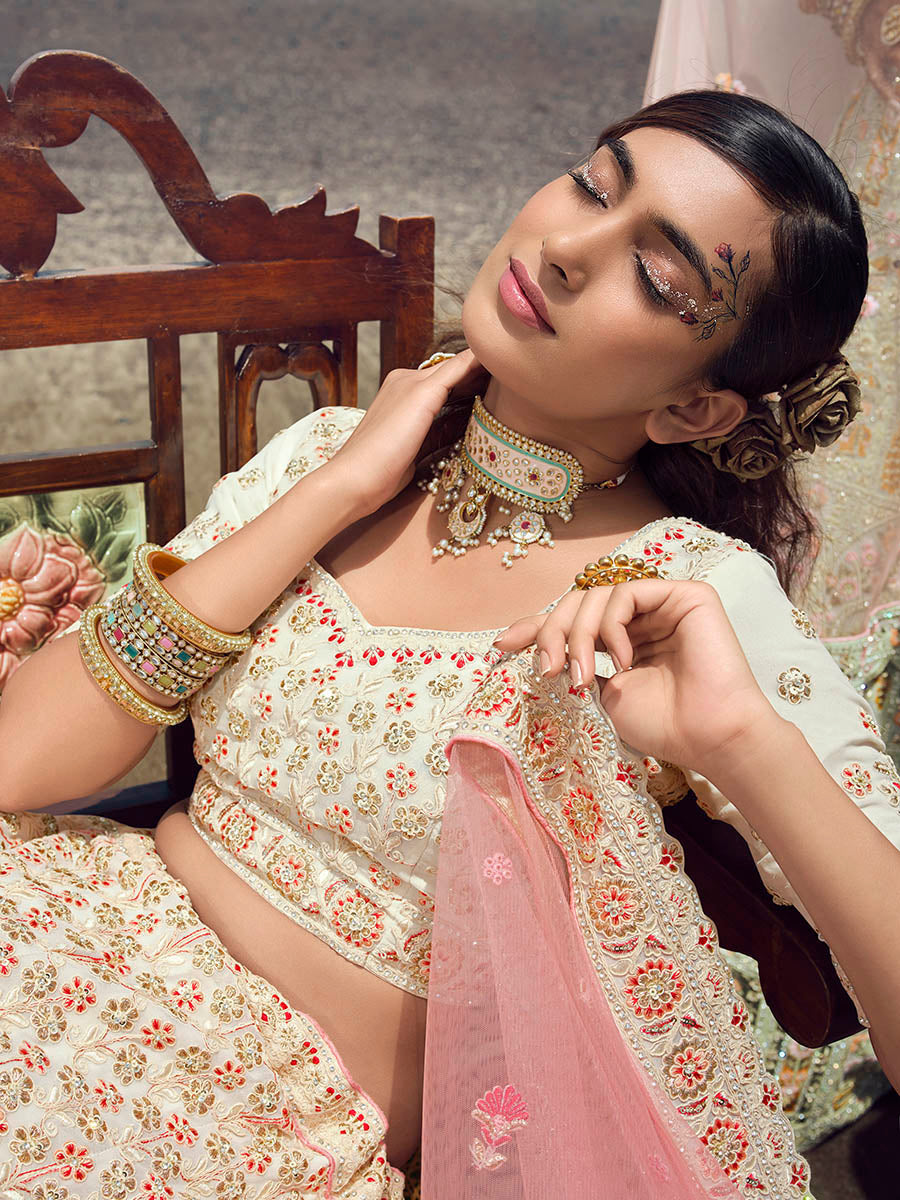 Myra White Georgette Embroidered Designer Lehenga Choli - Distacart