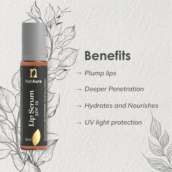 NatAura Lip Serum SPF 15About The Product:Broad-Spectrum Protection: The Lip Serum SPF 15 offers comprehensive protection against harmful UVA and U...