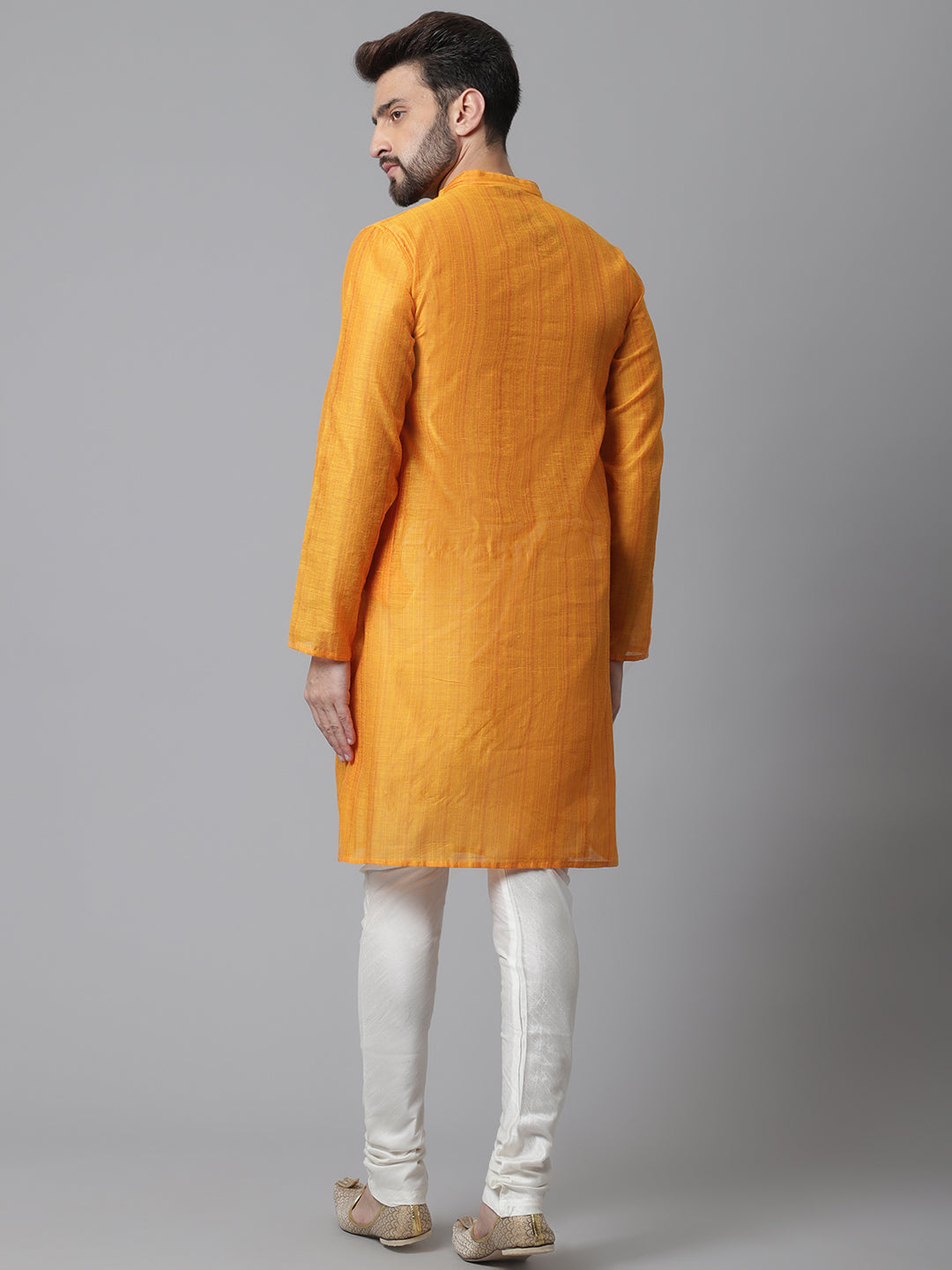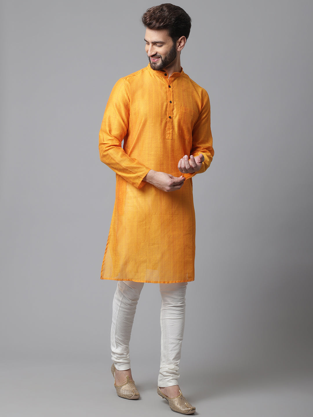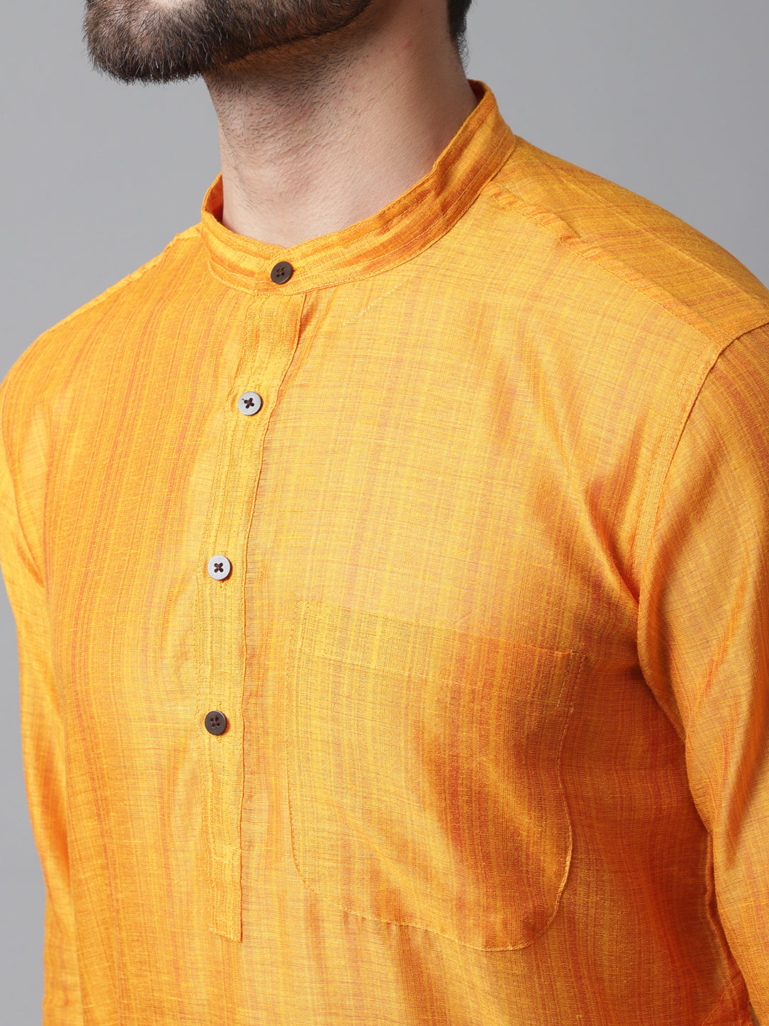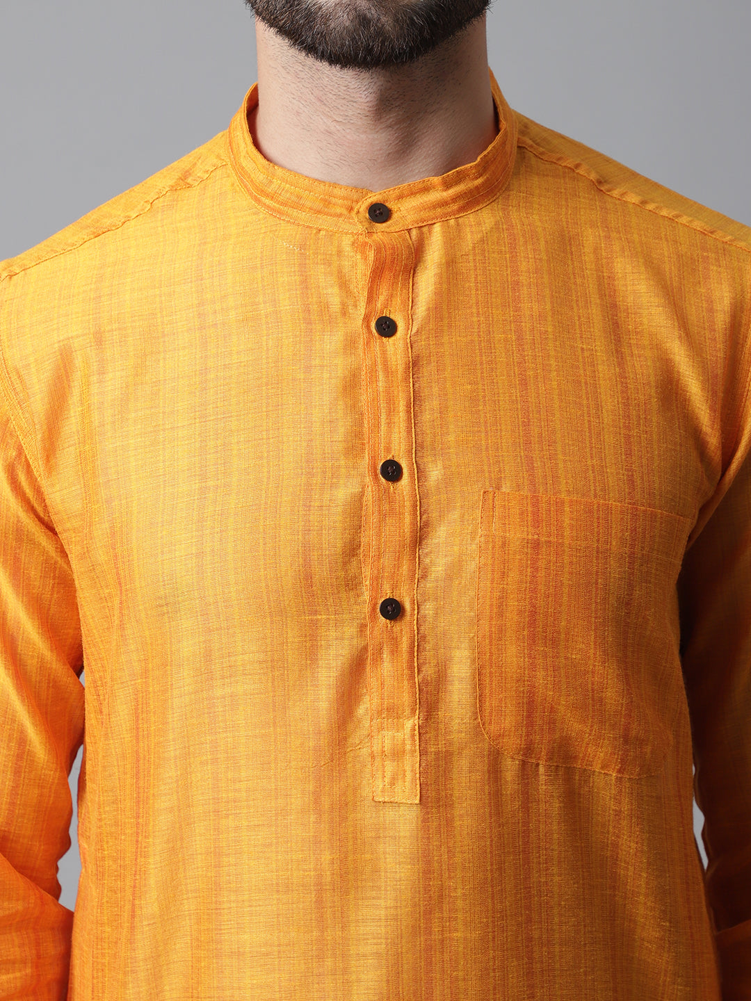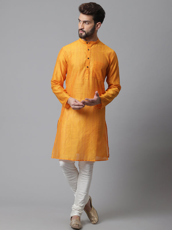 Even Apparels Yellow Check Kurta With Band Collar About the product: Check kurta with band collar. Additional Information: Fabric: Cotton Silk...