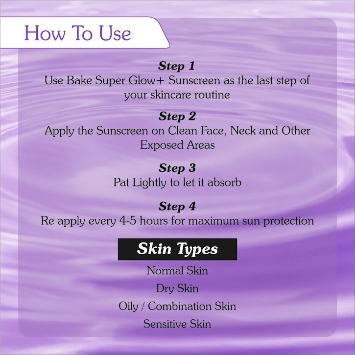 • Use Bake Super Glow+ sunscreen as the last step of your skincare routine