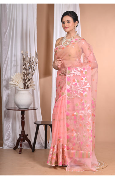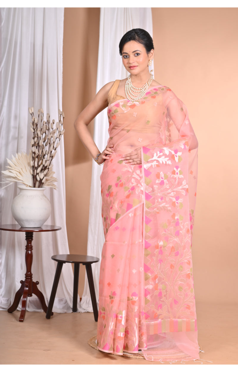 Morchari Heavy Jamdani Silk Orzanga Saree-Pink