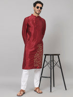 Classic Silk Kurta With Leaves Embroidery by Hilo Design - Distacart