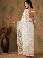 Sangria Embroidered Net Sarees Product Details Product Design Detail: White saree Floral embroidered with no border Has embroidered detail The...