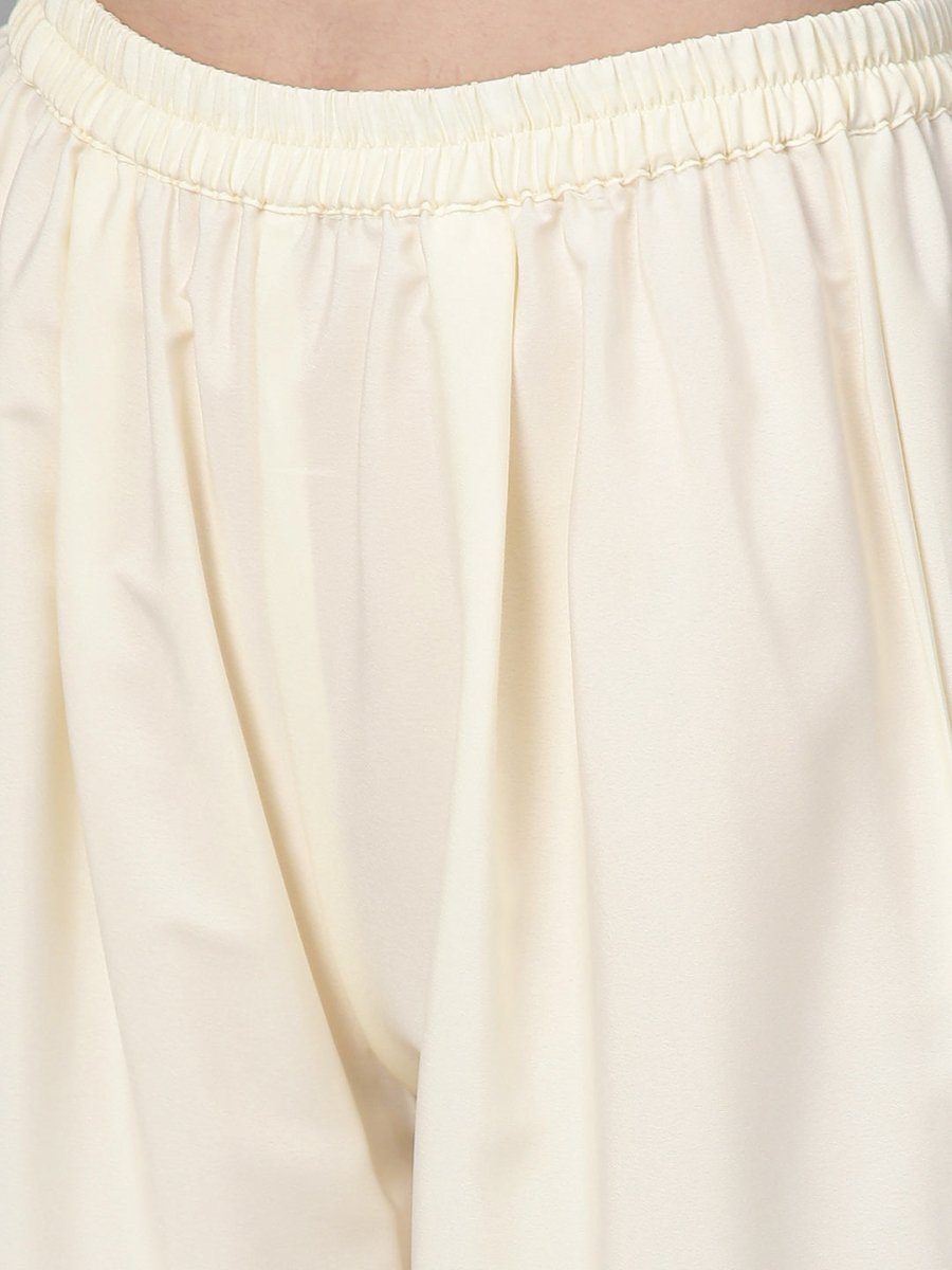 • Off-white solid palazzos, has an elasticated waistband, slip-on closure