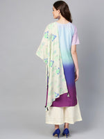 • Blue, off-white, and purple printed kurta with palazzos and dupatta