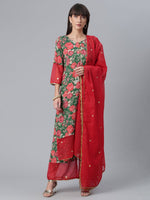 Ahalyaa Women Green Floral Printed Regular Kurta With Palazzos & Dupatta - XS