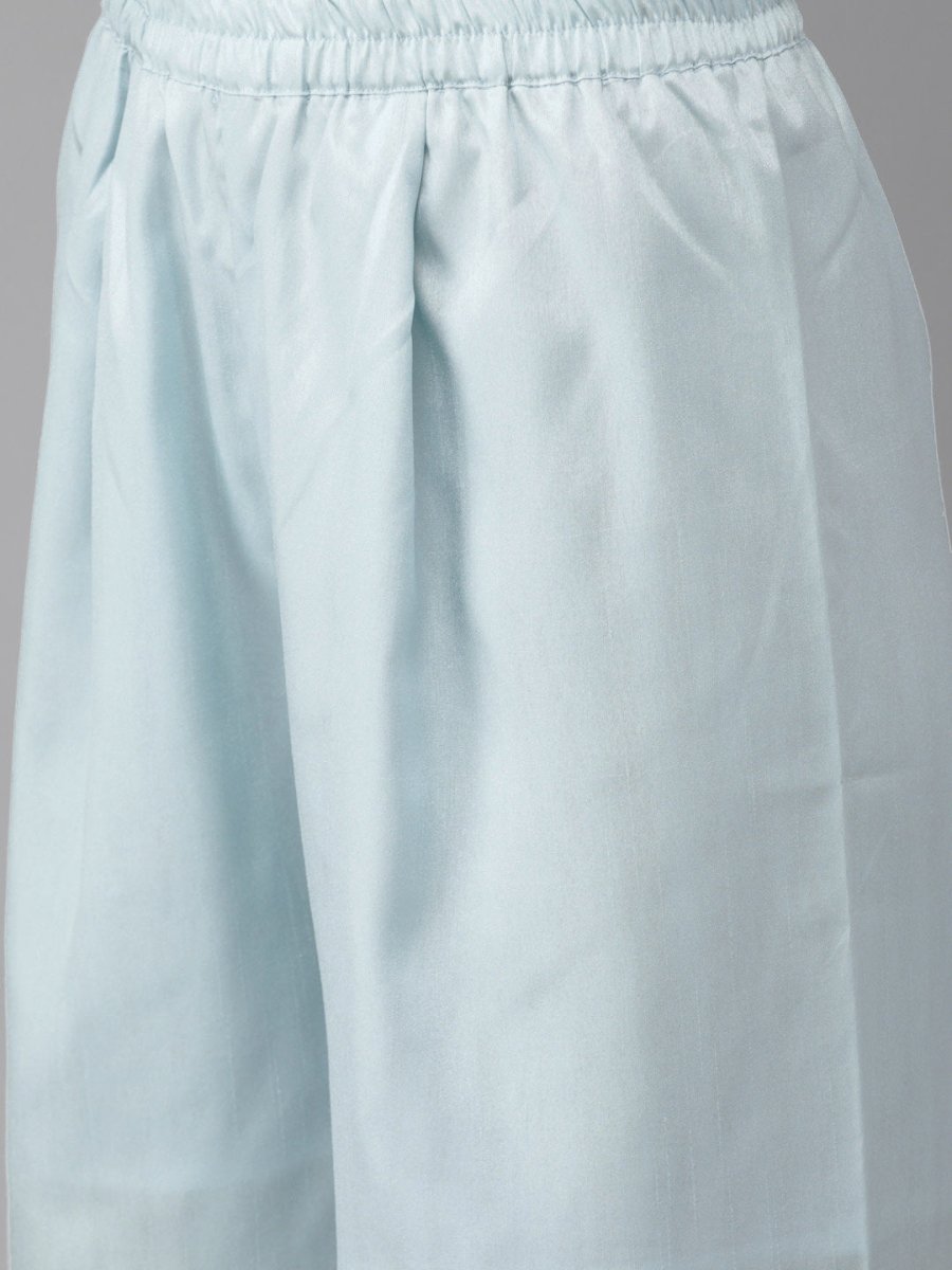 • Blue Solid palazzos, has an elasticated waistband, slip-on closure