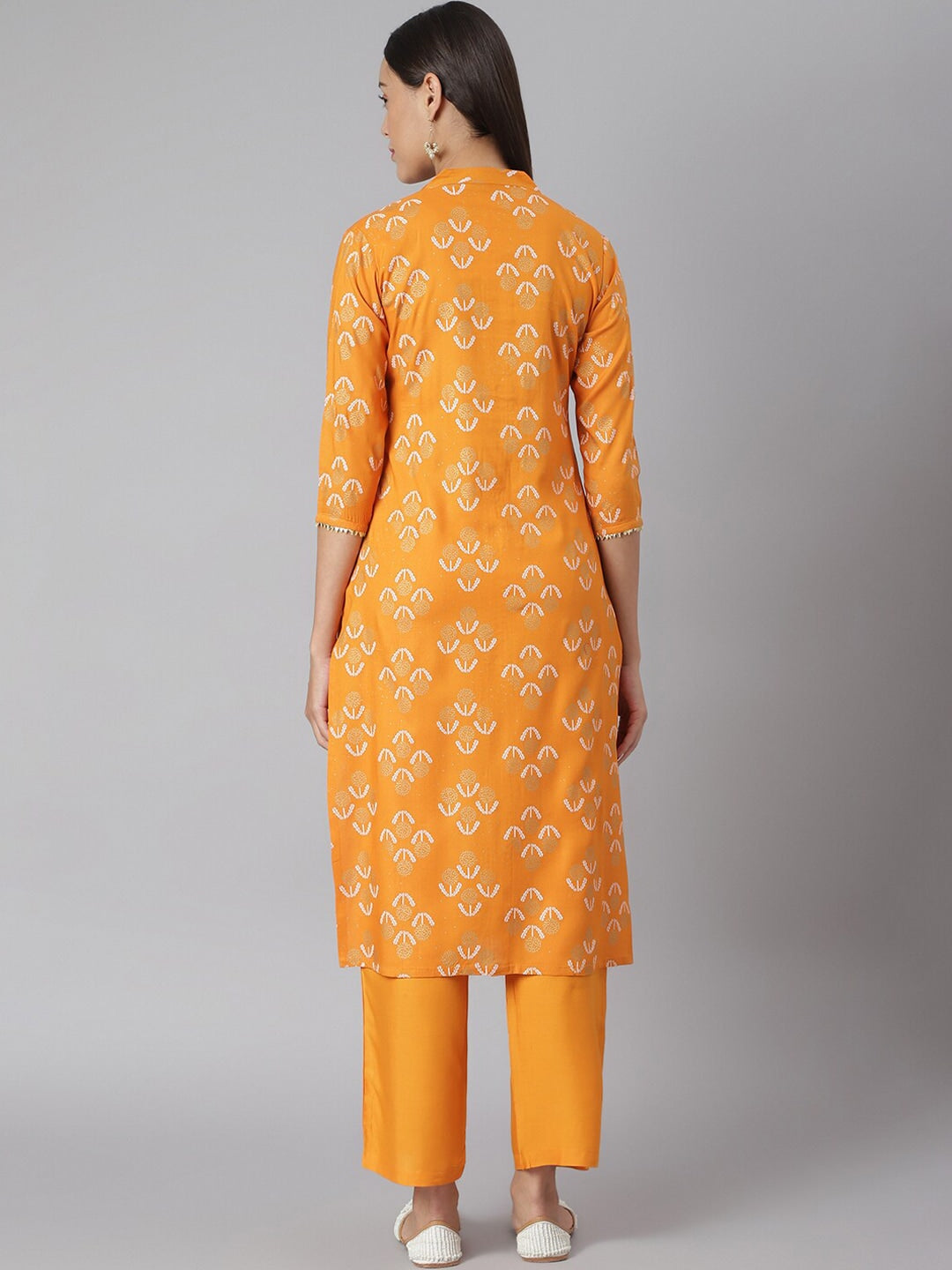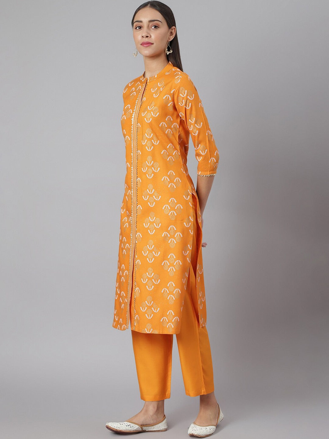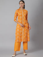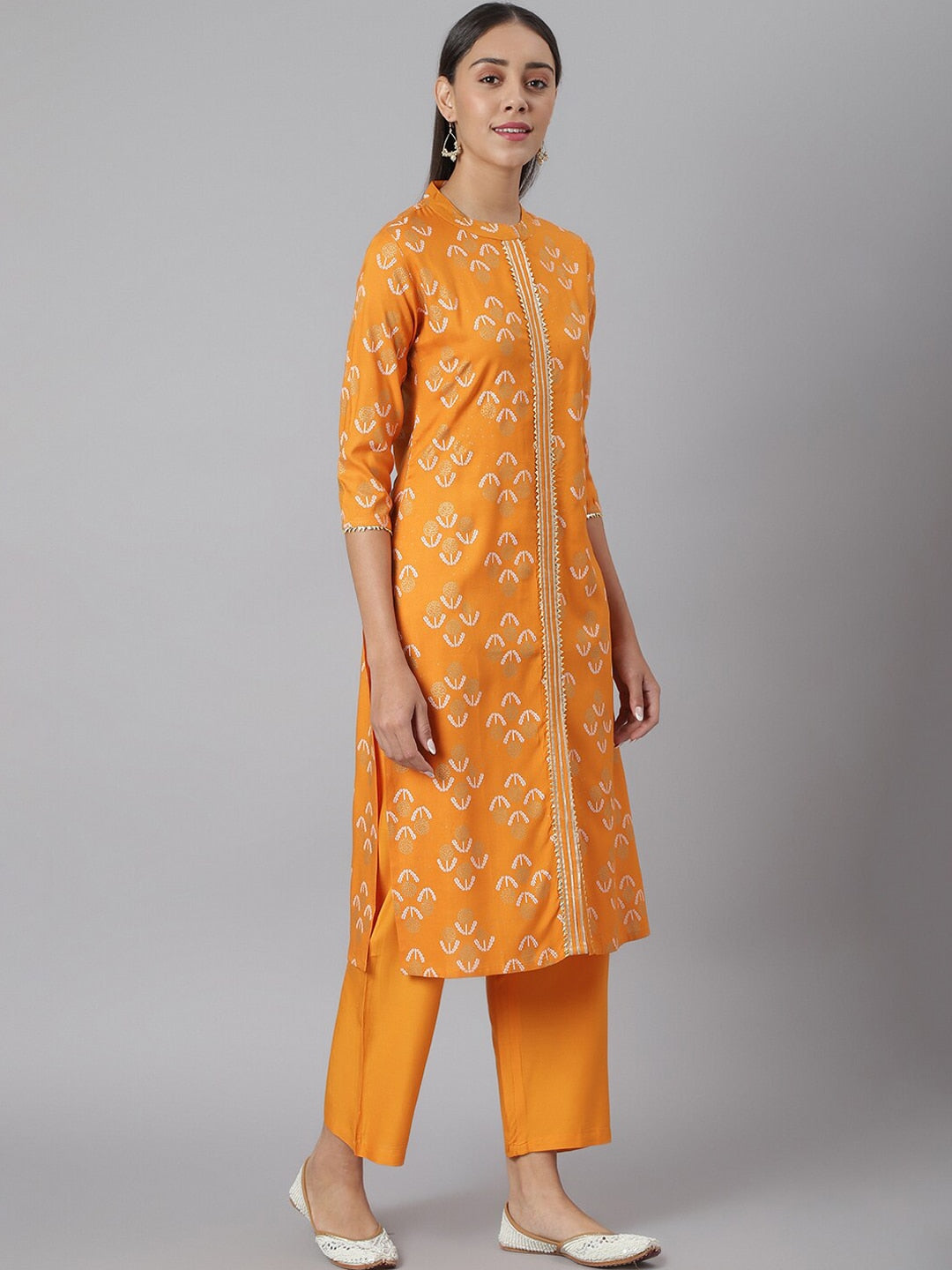 Khushal K Women Mustard Yellow Floral Printed Regular Kurta with Palazzos