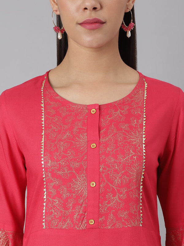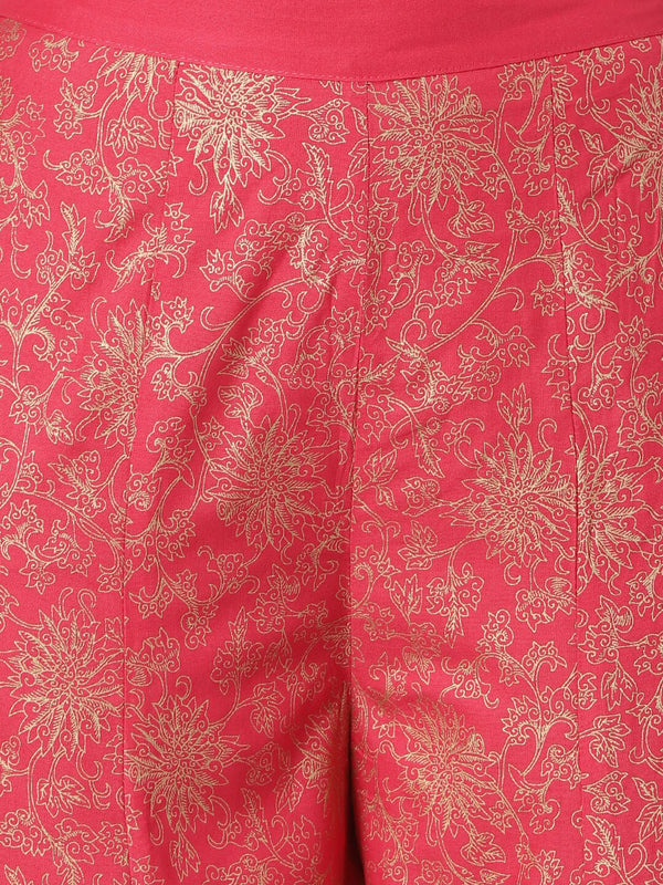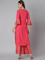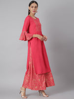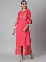Khushal K Women Pink Ethnic Motifs Yoke Design Regular Kurta with Palazzos