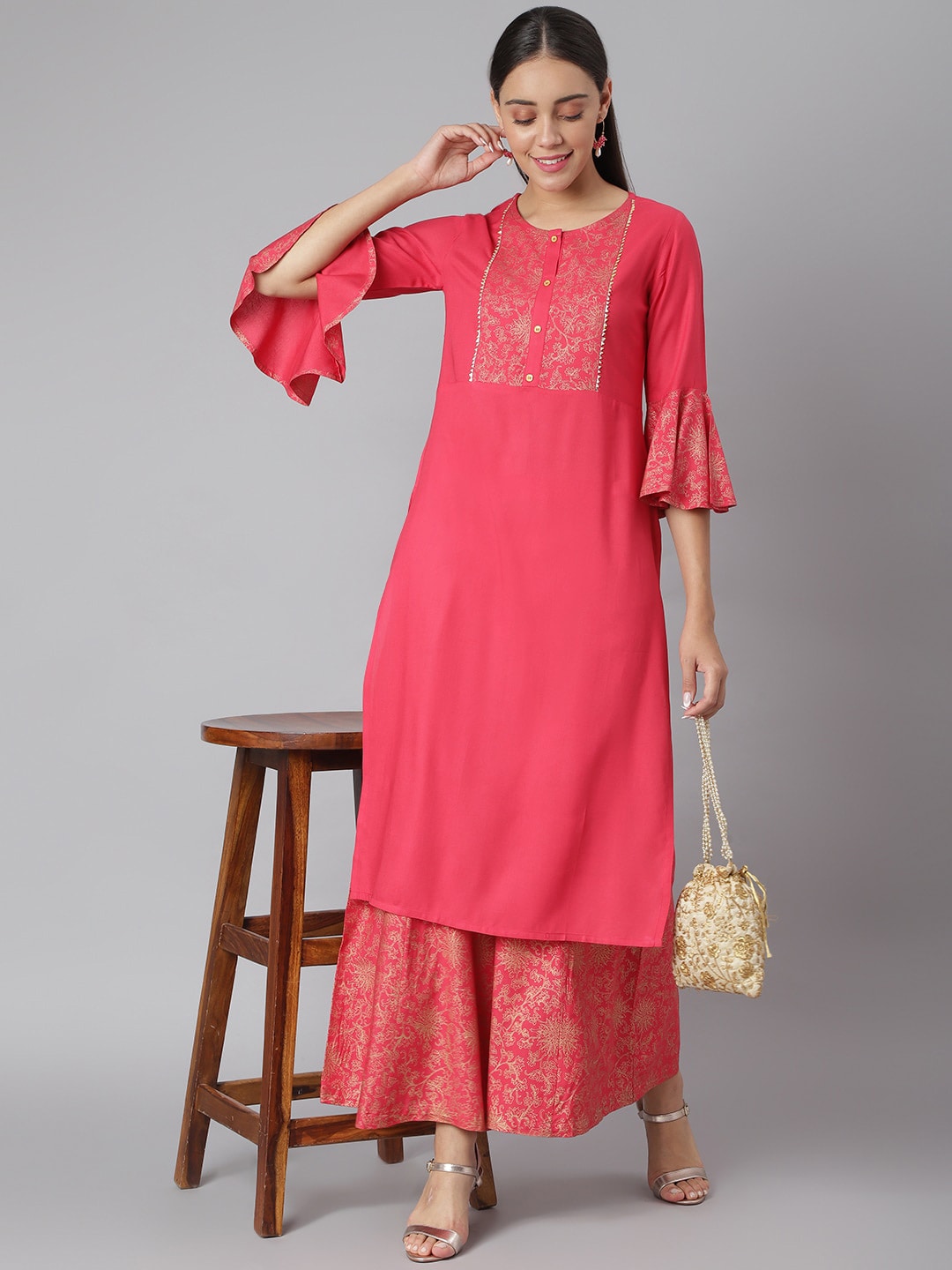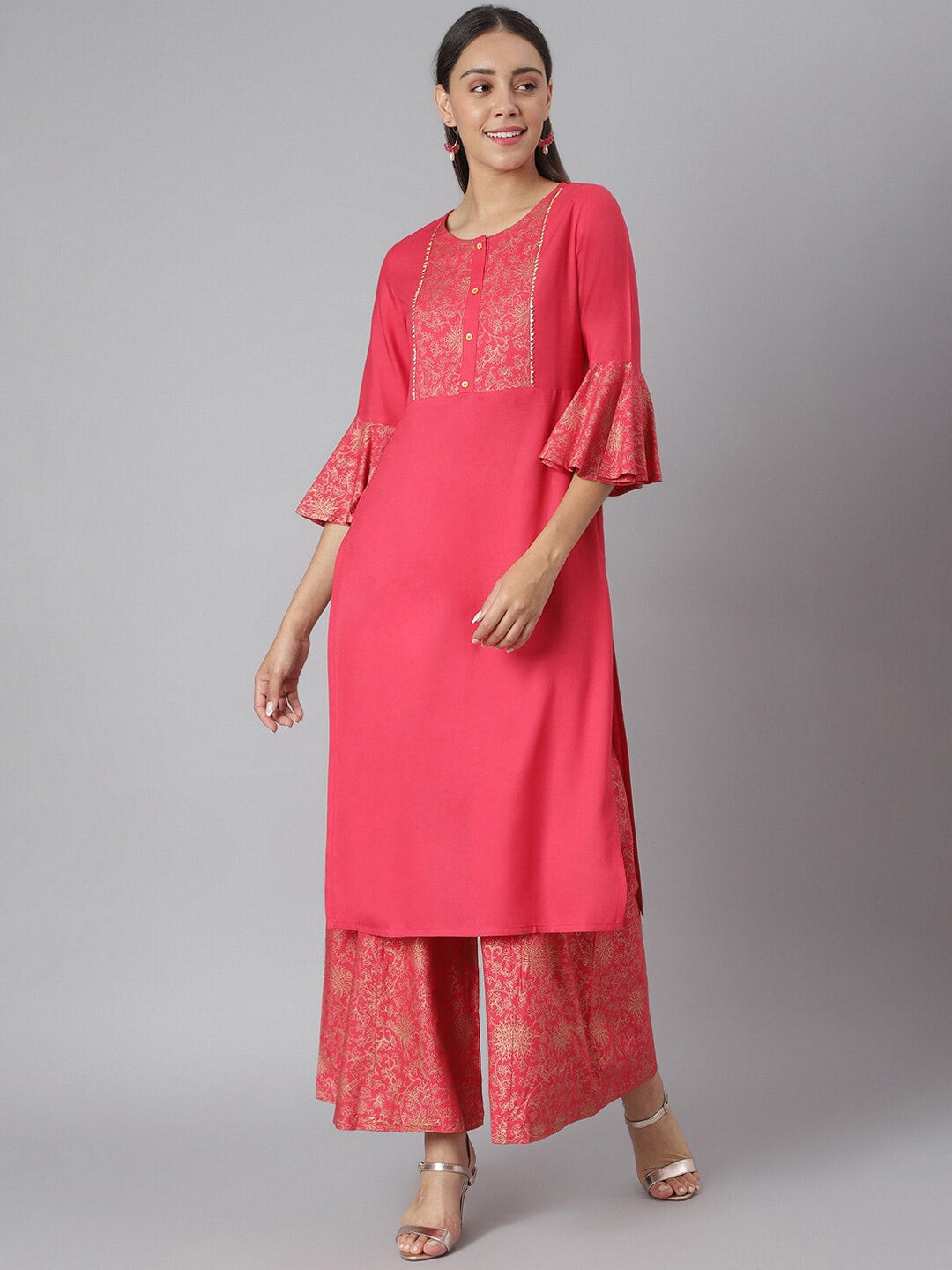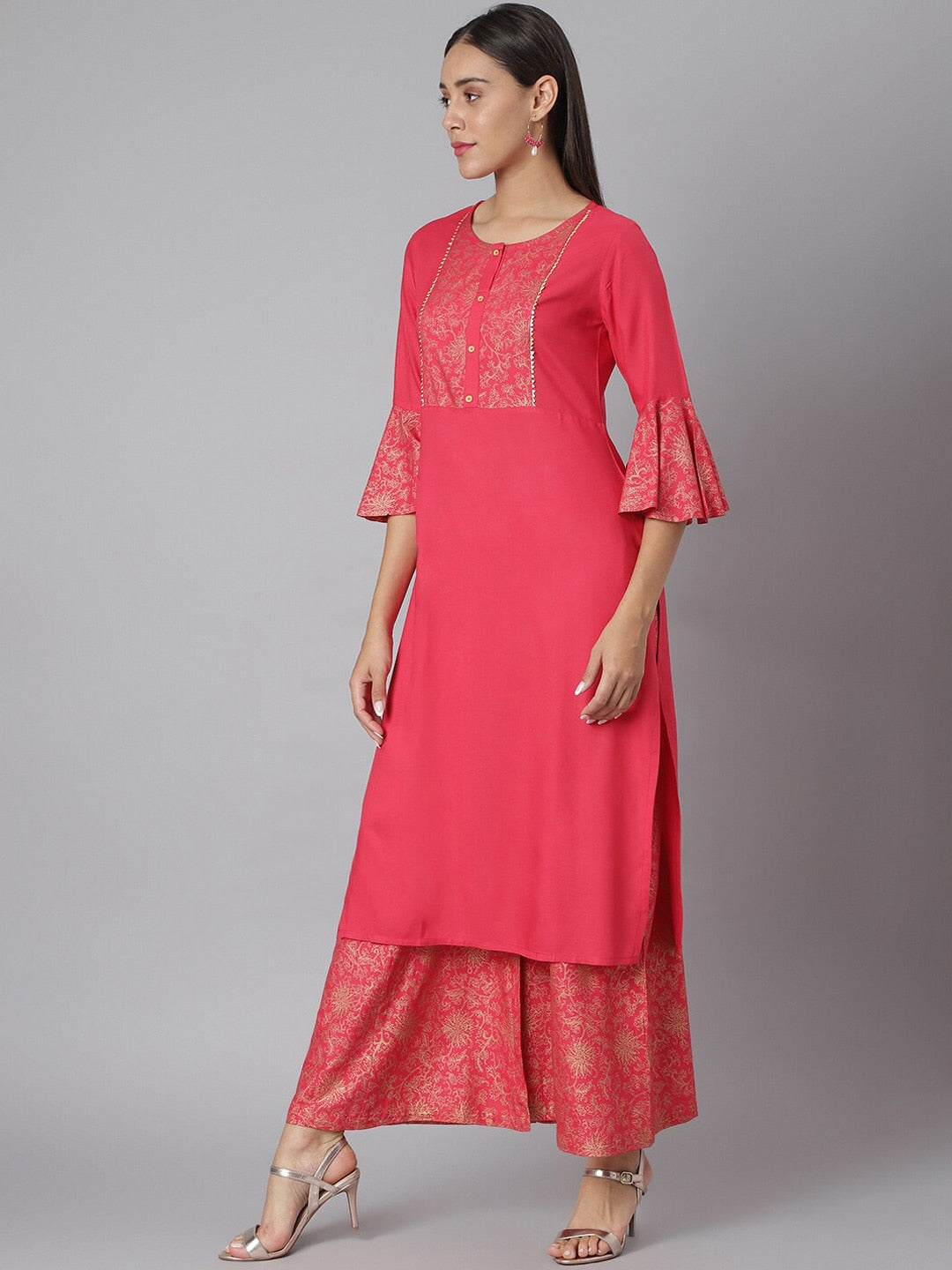 Khushal K Women Pink Ethnic Motifs Yoke Design Regular Kurta with Palazzos Product Details Pink yoke design Kurta with Palazzos Kurta design:...