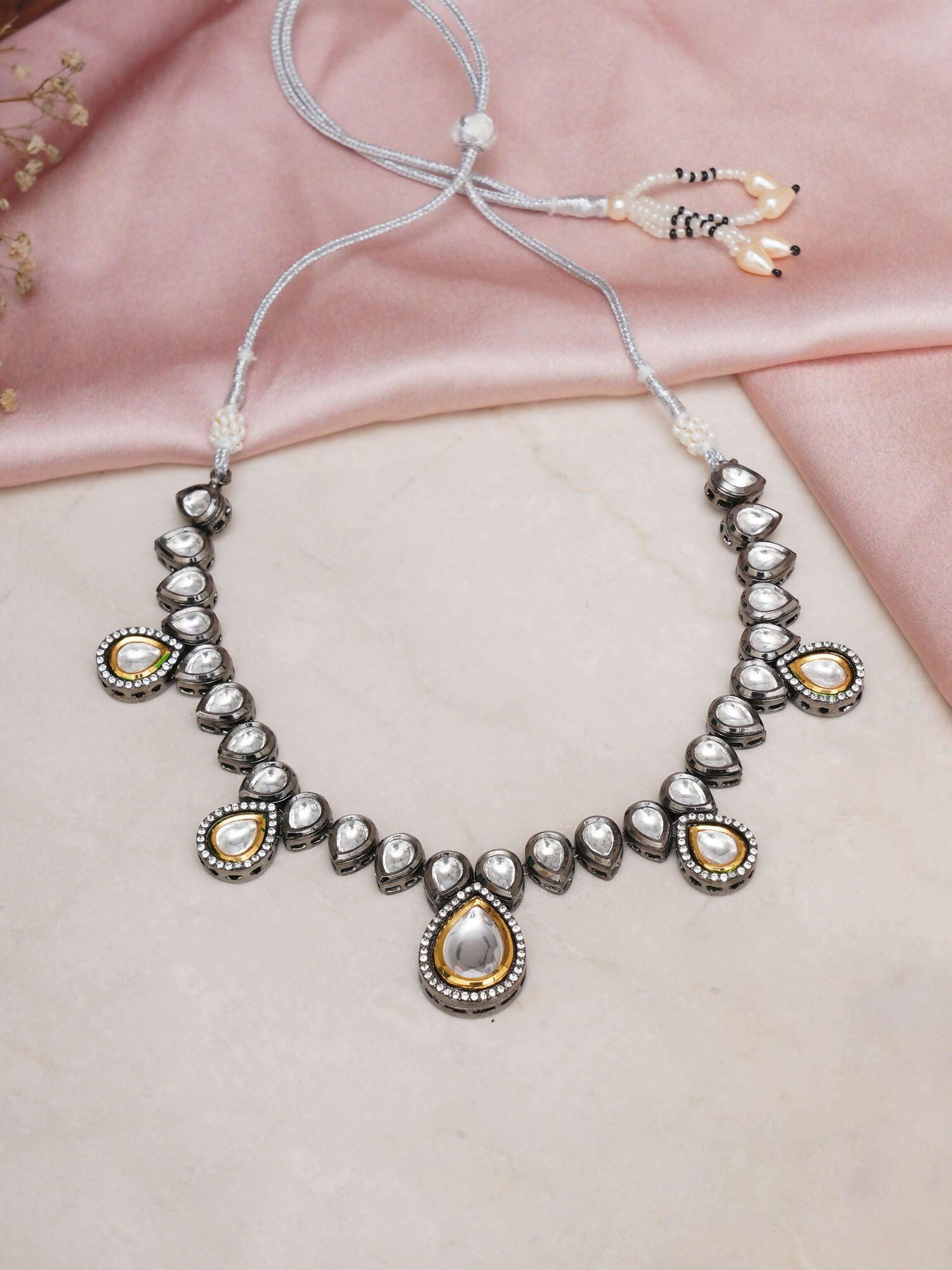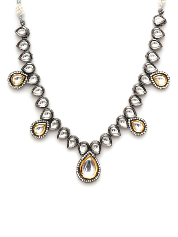 Dual Tone Kundan Neckpiece (silver) - Ruby Raang