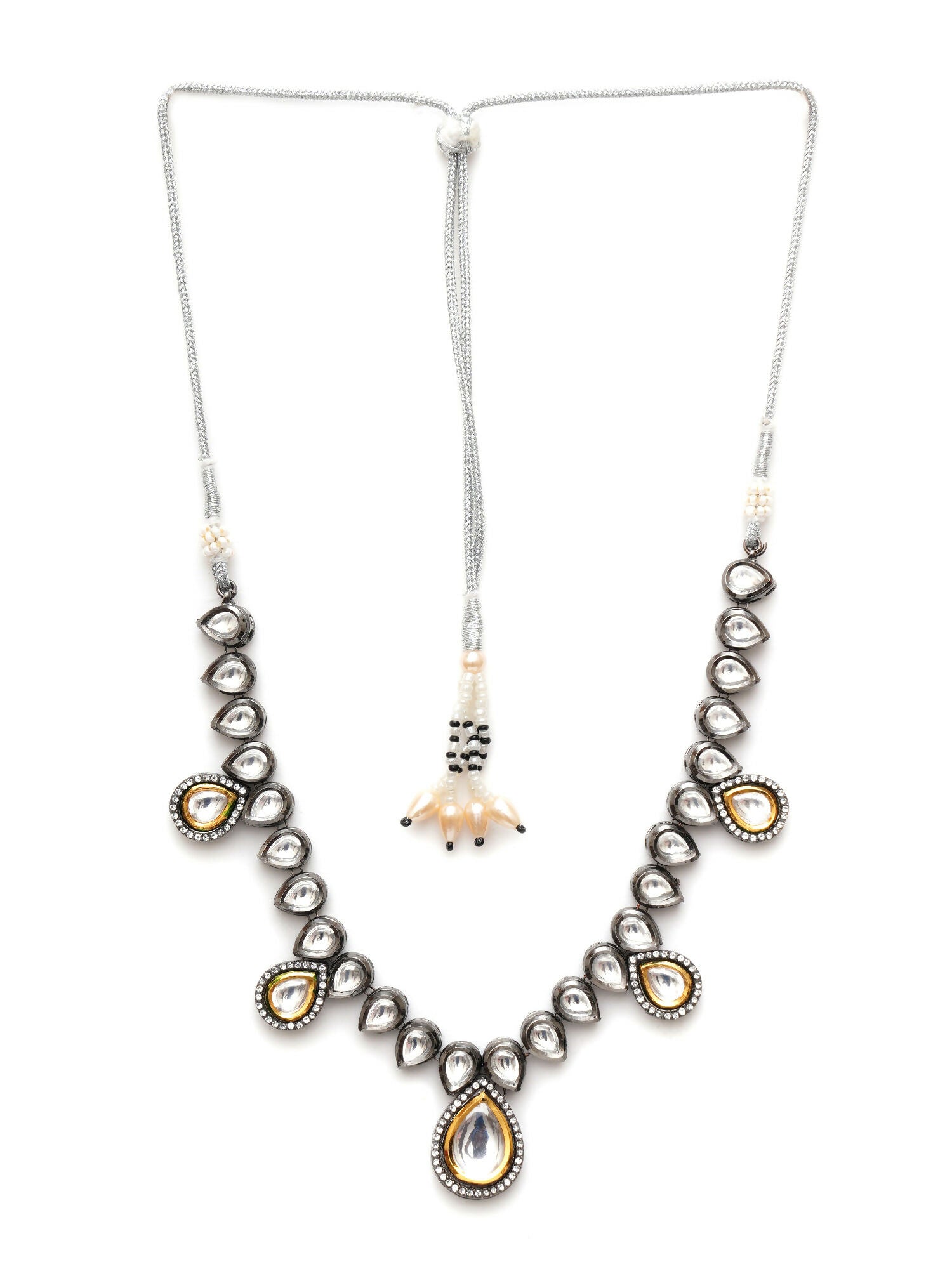 Dual Tone Kundan Neckpiece (silver) - Ruby Raang - Distacart