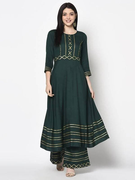 Aniyah Rayon Bottle Green Color Anarkali Palazzo Set (AN-204K):