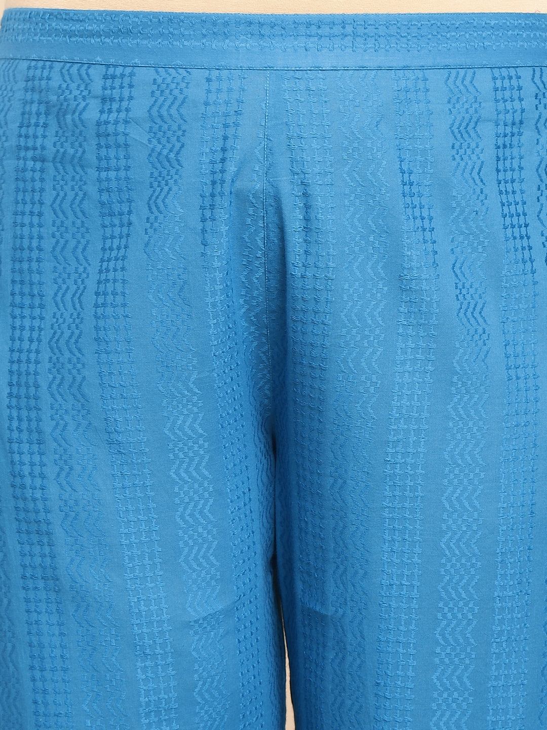 Janasya A-Line Jacquard Teal Self Design Band Collar Co-Ords
