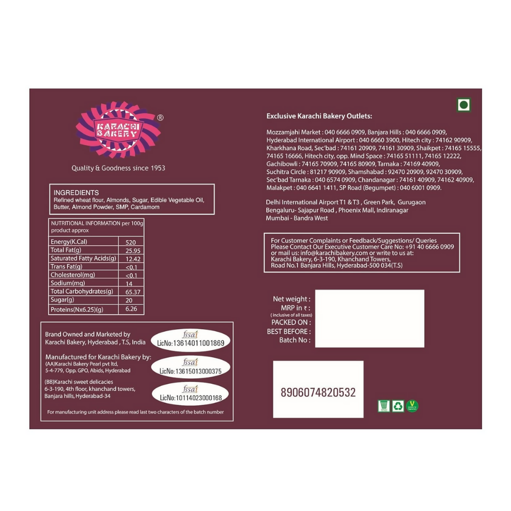 Karachi Bakery Badam Nankatai BiscuitsAbout the Product:Karachi Bakery Badam Biscuits are made with the best ingredients and mixed with select frui...